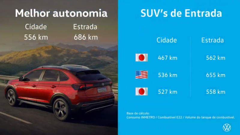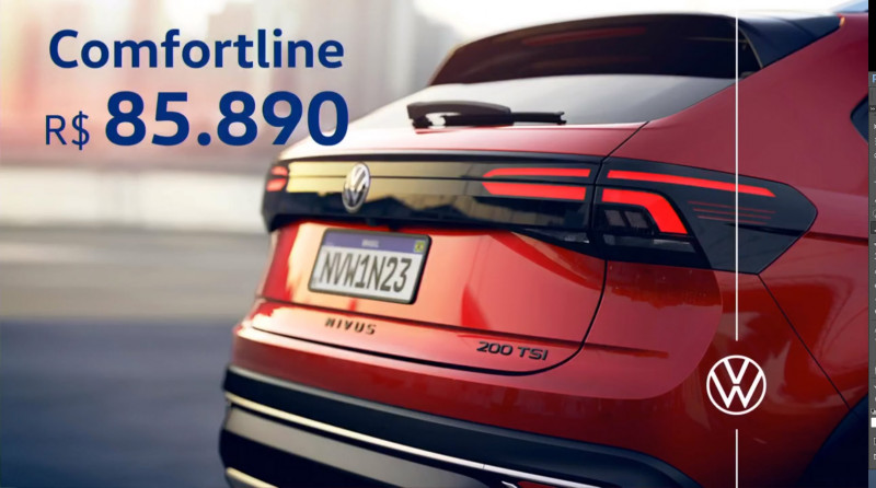 Nivus terá uma gama enxuta com as versões Comfortline 200 TSI por R$ 85.890 e Highline 200 TSI por R$ 98.290