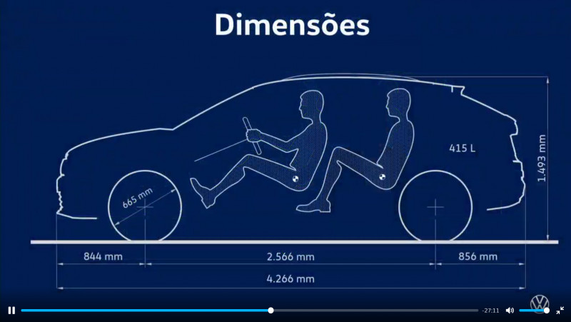 O espaço interno é outra virtude do Nivus. Com 4.266 mm de comprimento, 2.566 mm de distância entre-eixos, 1.757 mm de largura e 1.493 mm de altura, o crossover coupé de personalidade única e marcante transporta até cinco ocupantes com muito conforto para pernas, joelhos, ombros e cabeças.