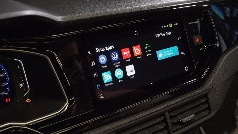 O Nivus traz uma completa interface digital, com a combinação do painel de instrumentos configurável Active Info Display de 10,25 polegadas e da nova central de infotainment VW Play. O VW Play conta com tela temperada anti-risco de altíssima resolução, de 10,1 polegadas sensível ao toque, com funcionamento semelhante ao de um tablet ou smartphone. Destaque para a conexão de internet via celular (usando rede de dados do smartphone do cliente), manual cognitivo, APP ‘Meu VW’ pré-instalado (possibilitando o agendamento de revisões periódicas, por exemplo), e a inédita VW Play Apps, uma loja virtual exclusiva de aplicativos que podem ser baixados na memória interna de 10GB, como iFood, Deezer, Estapar, Porto Seguro, Waze, Ubook, entre outros. É uma experiência inédita de uso do infotainment como um tablet a bordo.