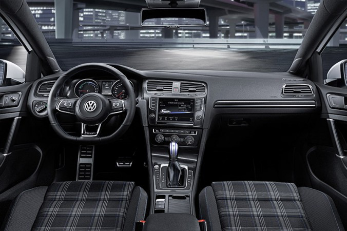 Como do lado de fora, o interior esportivo do Golf GTE revela uma clara relação com seus dois outros companheiros da série GT. Apesar disso, como no exterior do carro, os toques vermelhos do interior também foram convertidos para o azul. Klaus Bischoff afirma: “A cor azul, característica da Volkswagen e-mobility, cria contrastes atraentes nos bancos do carro, costuras decorativas e materiais do design. Mais ainda, a iluminação ambiente azulada cria uma ligação visual com o mundo da mobilidade elétrica”. As costuras decorativas azul-claro no volante revestido de couro, nas bordas dos tapetes, bancos e na empunhadura do câmbio combinam perfeitamente com as características exteriores do Golf GTE.