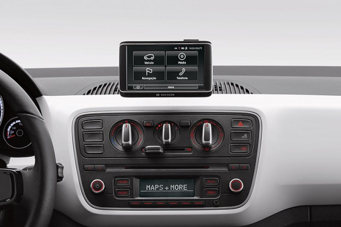 Na gama TSI, existe como opcional, a partir do high up! o “maps & more”, que inclui navegação por GPS. Este é uma tela sensível ao toque (touchscreen) que funciona como extensão do rádio e do computador de bordo do veículo, montado na parte superior do painel, num suporte específico. Instalado no centro do painel com uma tela de 5 polegadas, o “maps & more” permite visualizar as seis principais funções do “infotrip” de maneira gráfica: consumo instantâneo, consumo médio, distância percorrida, tempo de percurso, autonomia e velocidade média; como uma extensão do quadro de instrumentos, exibindo o conta-giros e o termômetro do moto r; e para a função ECO, com representação gráfica de comportamento do condutor, para auxiliá-lo a dirigir de forma mais econômica.
