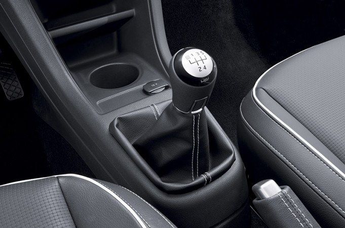 No up! TSI, a transmissão manual de cinco marchas traz relação do diferencial alongada em 26%. Diferente do Up MPI, o TSI vem com a transmissão MQ200. Não está disponível o sistema robotizado iMotion, nem o câmbio de seis marchas (encontrado no moto r 1,6 litro -16 válvulas da linha Fox). Segundo a engenharia da Volkswagen, isso acontece por falta de espaço no cofre do moto r do Up. Assim, no Up TSI as relações de transmissão manual são as mesmas do modelo com o moto r MPI. Mas o diferencial foi alongado para 3,625:1. Isso faz com que o moto r trabalhe em rotações mais baixas quando o carro trafega em estradas. Em 5ª marcha e a 100 km/h, o moto r está girando a aproximadamente 2.300 RPM. De forma complementar, o modelo também vem com o instrumento que indica a marcha ideal a ser selecionada no painel. Como em outros produtos da Volkswagen, a unidade de comando (ECU) calcula continuamente qual marcha deve ser engatada para uma condução mais econômica.