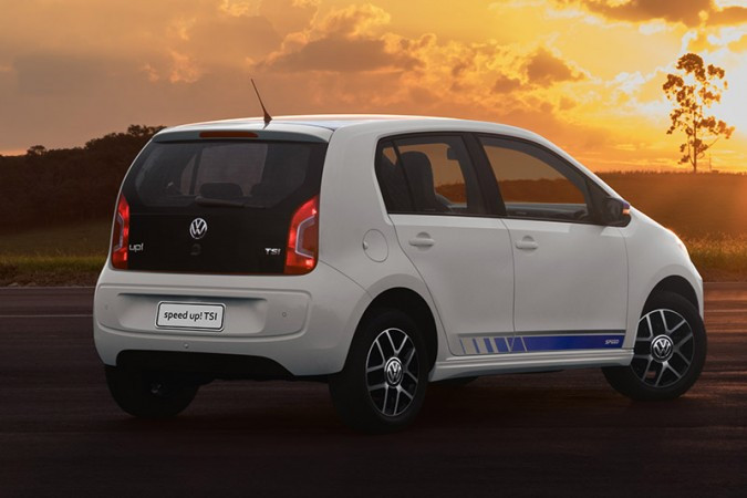 A principal novidade na linha TSI, e também na família do Up, é a versão speed up! A lista de itens de série dessa versão é baseada na do black/white/red up! TSI, com as exclusivas rodas zurique II, de 15 polegadas. Estão incluídos bancos revestidos de couro sintético “native”. As alavancas de câmbio, freio de estacionamento e o volante também são revestidos desse material. O modelo é oferecido unicamente na cor branca, com os retrovisores laterais pintados na cor azul. O valor é de R$ 49.990.
