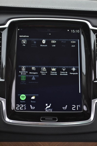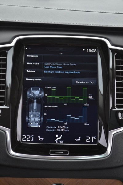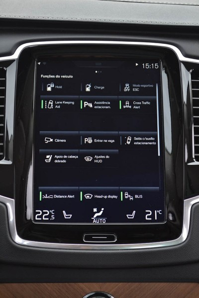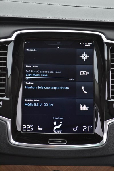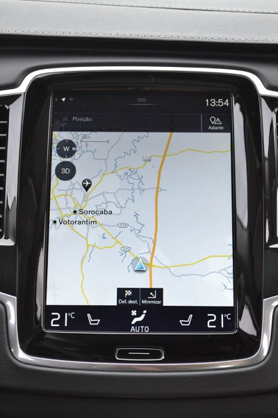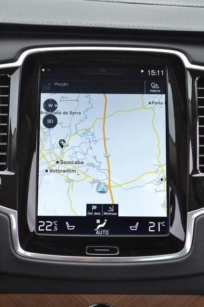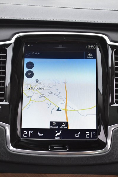 Até mesmo o ajuste do sistema de climatização é feito diretamente pela tela da central multimídia do XC60/XC90.