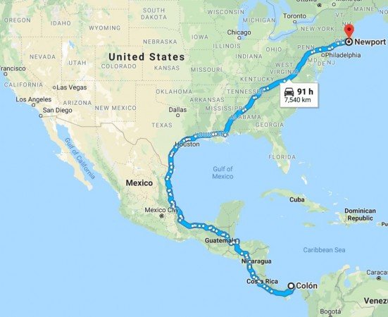 No Panamá e resolvida a burocracia de entrada do carro no país, a expedição segue por Costa Rica, Nicarágua, Honduras, El Salvador, Guatemala, México e, finalmente, Estados Unidos, numa extensa faixa de asfalto de 7.540 km pela Costa Oeste até Newport, em Rhoad Island. Assim, para cumprir a expedição, o trio terá de rodar cerca de 1.300 km por dia.