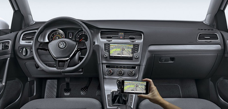 Agora, o Golf também conta com o App-Connect, já disponível na família Fox. Essa tecnologia permite que a tela do celular seja “espelhada” na tela central do sistema de infotainment. Ou seja, a tela do veículo repete o que está sendo exibido na tela do celular, e permite comandar o sistema de infotaiment pelo celular ou comandar o celular pelo sistema de infotainment.